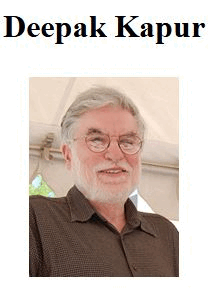 Below are some memories of Deepak from some of his friends. This webpage will be updated as more friends send in their memories. Independently, a former student of Deepak's, ThanVu Nguyen, has set up a googlegroup:https://groups.google.com/g/deepak-kapur-memorial The posts to the group are open-access and have much information about Deepak's scholarly life.